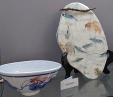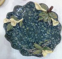 My pottery is made by hand in slab form or on the potters wheel. An individual piece may be composed of several clay pieces joined, or I may shape it, allowing for shrinkage so it can accommodate the driftwood handle. I now make bowls and platters that have stylized oriental feel. This came from my interest in learning the proportions and structure of bonsai pots and vases.