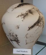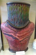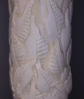 d. 2005. This 17 inch tall, highly carved vase is titled "Spring Glory." It is made of a porcelain clay, and painted with oil paint.