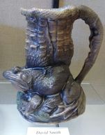David is a ceramics instructor at Salisbury University in Maryland. I'm loving the juxtaposition of the frog under this drinking vessel. Then there's the alligator impressions above the frog, and tiny shrimp are painted inside the mug.