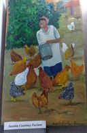 This is an original oil painting, and the detail in each chicken is wonderful. Juanita painted many chickens, scenes of rural life, and sights throughout Louisiana.