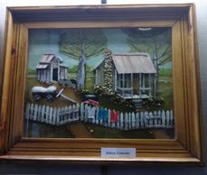 Sidney cut tiny pieces of wood, and then assembled them into this rural Louisiana scene. Then he painted the scene, hand built the frame, and enclosed it in glass. His attention to detail was amazing.
