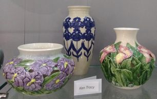 The floral designs in Ken's work come from inspiration of the local flora of Louisiana. His classic forms are then decorated with floral designs. Using the sgraffito technique, the design is etched free-hand through the colored surface into the clay.
