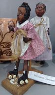 Lorraine is a multimedia and self-taught artist who has been inspired by the colorful traditions and rituals of Louisiana. She celebrates life in Louisiana by creating art in her traditional folk artistry. These "Mississippi Mud Dolls" are formed from mud/clay dug from the banks of the river near her home in Hahnville. The fired clay is a reddish color that she embellishes with acrylic paint. The dresses are also handmade. In 2003, Lorraine was commissioned by New Orleans Mayor Ray Nagin to create gifts for visiting dignitaries, and her pieces decorated the tables at the Arts Council of New Orleans awards banquet.